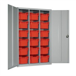 18 Tray High-Capacity Storage Cupboard - Grey with Red Trays